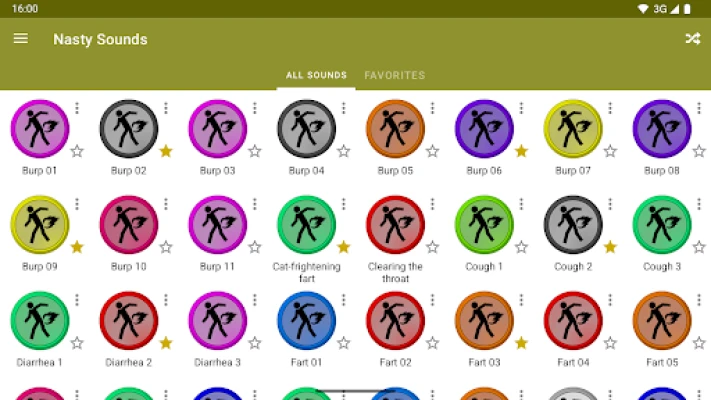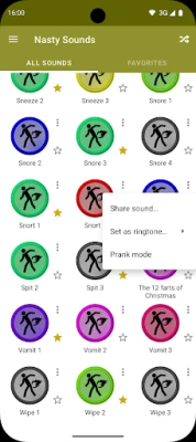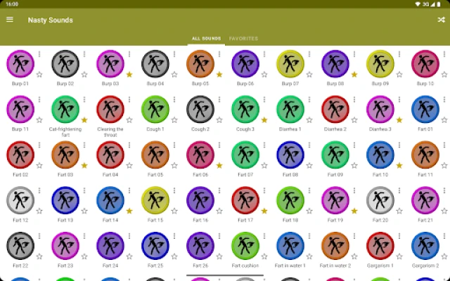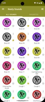 Nasty Sounds contains more than 70 nasty sounds (farts, burps, vomits, etc.) so you can listen to them at any time, without the need of a data connection!